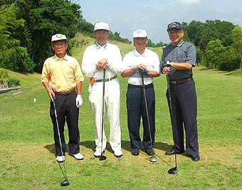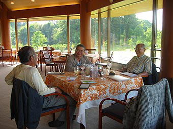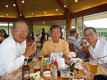 | 左から玉井、山本、馬場 | ゴルフ終了後の歓談 |