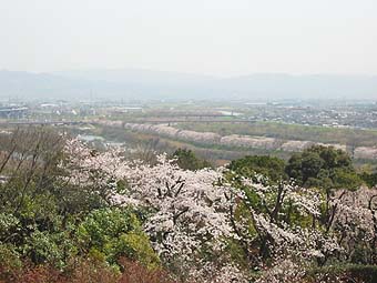 | テラスから木津川・宇治川の合流点を望む | 男山方面を望む |