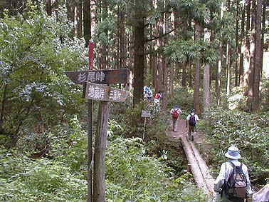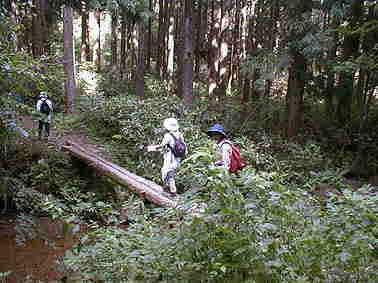| 丸太橋 | 丸太橋を渡って地蔵峠へ |