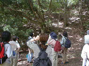 | 自然観察指導員の説明を聞く | 芦生スギの伏状根 |