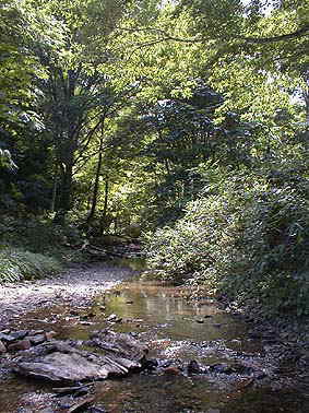 | 源流に沿ってこういう道が続く | 源流沿いを歩く |