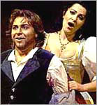 Mr. Alagna and Ms. Gheorghiu are young and trim, and have voices that are suited to these roles, indeed, to many another pairing in the great canon of operatic lovers. In theory, na・e as it may seem, their policy of always working together should guarantee the kind of chemistry that was evident on Tuesday. They have quickly discovered, though, that it is no longer the 1950's. Or at least that they are in no position this early in their careers to make the kinds of demands or unleash the displays of temperament that were the calling cards of divas past. When they insisted on the right to approve the stage designs for a production of "La Traviata" a few seasons ago, the Met rebuffed them. When their countermove was to hesitate before signing the contract, the Met withdrew it. It was the kind of unambiguous power play the opera world loves to chatter about in the absence of anything truly compelling on the stage. Still, given the couple's popularity and the likelihood that it will grow, sending them into permanent exile would not have been good business. So it was only a matter of days before the Met offered them this "Elisir." Since they already knew this 1991 John Copley production, with its pastel-hued sets and bright costumes by Beni Montresor ? Mr. Alagna appeared as its Nemorino in 1996 ? the offer circumvented their need to approve stage designs. The official word is that they were on their best behavior during the rehearsals. They bring an important measure of individuality to their portrayals. The Met's first-string Nemorino in recent seasons has been Luciano Pavarotti, who has played the character as a lovable oaf who gets the girl by dint of his innocence. Mr. Alagna's version is nuanced differently: he plays up the desperation of his love for Adina more melodramatically and borrows a strand of Papageno's DNA to create the endearing empty-headedness that makes Nemorino so vulnerable to Dulcamara's hucksterish wiles. There is also, of course, the matter of a firm, attractive timbre and a sense of how to wow an audience by lingering on beautifully produced notes (not necessarily the high ones) and moving expertly through the ornaments in Donizetti's later, more florid version of "Una furtiva lagrima." Ms. Gheorghiu's Adina, similarly, departed from the more self-consciously cute and coy portrayals that Kathleen Battle and Ruth Swenson have made the house norm. Ms. Gheorghiu's characterization is more steely at first, and not only because her stage laugh evokes Margaret Hamilton's as the Wicked Witch in "The Wizard of Oz." She takes her time showing Adina's softer side, and that works well with Mr. Alagna's studiously innocent portrayal of her rustic suitor. Vocally, too, she is Mr. Alagna's match: her singing had an appealing fluidity, ample variety and an admirable consistency from top to bottom. The production also benefits from Dmitri Hvorostovsky's uncharacteristically lightweight portrayal of Belcore, and Paul Plishka's masterly Dulcamara. And Evelino Pido who conducted this couple's recording of "Elisir" on EMI Classics and was making his house debut, drew a finely blended, bright sound from the orchestra. |