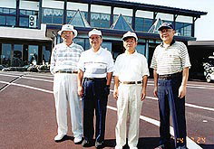 初めてのコースであるうえ、7日の後遺症も心配だったので、出足は 極力ゆったりしたスウィングを心がけたらボギー・ボギーのスタートと まずまず。ところが3番ショート・ホールで、グリーンエッジからなんと 5パットの6を叩いてからおかしくなり、OB2発もあってトリプル続出で アウトは結局57。後半風が強くなったが、慎重に構えたのがよく、 大叩きがなくなったうえ、最終ミドルホールの2オン2パットが効いて 久しぶりの40台が出てホッ!玉井さん91、地主の馬場さん99。 |