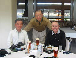 今日の圧巻は、出足アウトの3番ロングホール。ティーショットをフックして OBしたあと、5オンを狙ったアイアンが右にふけてバンカーへ。そこで 脱出になんと7つの大叩き、結局、13オン3パットの16でここ数年の 最高記録。バックからのプレーに拘らず、それ以外はなんとかしのいで いただけに残念! 北林さん87、荒瀬さん85、北野さん10X。 |