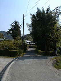 | 行者口バス停から行者山方面を望見する | バス停前の登山口 |