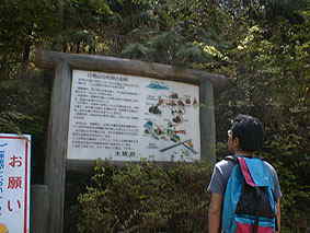 | 登山口の取っ掛かり | 登山道入り口の案内板 |