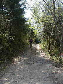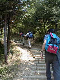 | 登山道を入ったところ | 登山道、こんな階段が途中まで続く |