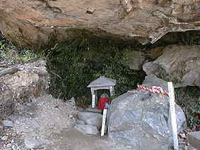 | 有名な行者山中腹の磨崖仏(大日如来) | 同左を横から見たもの |