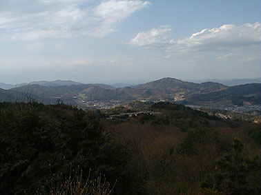 中央の遠い山は地蔵山(948m)と愛宕山(924m)