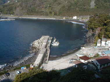 スキラ伊豆赤沢のベランダから赤沢漁港を見下ろす