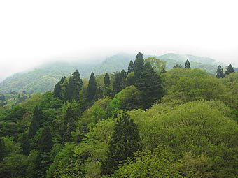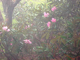 | 天狗の森 | 天狗の森にはシャクナゲが・・・。生憎の濃霧で・・・。 |