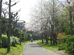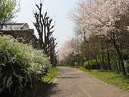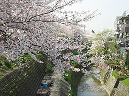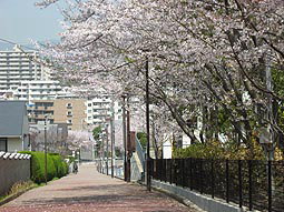| 坂道の続き | 天竺川沿いのサクラ並木(50本くらい) | 天竺川 |