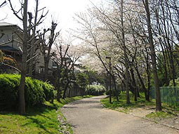 | 自宅玄関からつばき公園を見下ろす | マンション導入路のサクラ | つばき公園入口へ |