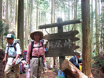 | 天見駅を9時前に出発して尾根筋をだらだら登り、 10時45分杉尾峠に到着、最初の休憩 |