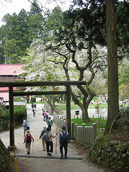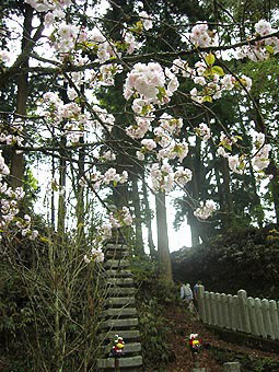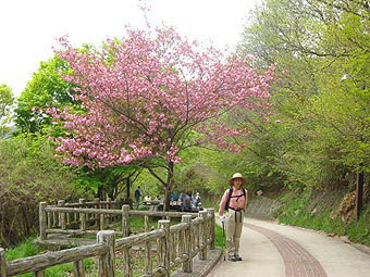| ピクニック広場でひと休み | 頂上近くでは八重桜が満開 |