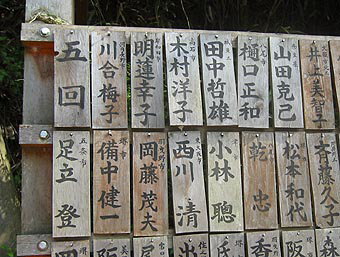 | 登山口に下りてきたらニ剛会(二上山から金剛山まで 30kmを縦走する会)の名札にお馴染みの名前を 見つけました。折坂さん何と60回! |