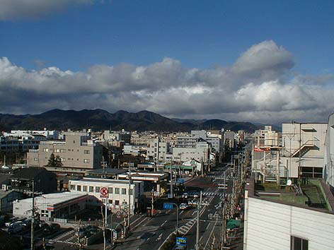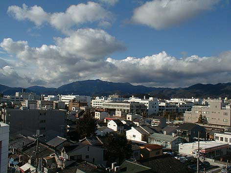 | 実家のテラスからの眺望(北山) 天気のよい日は蓬莱山はじめ比良連峰が望める (H13-1-14 2:30pm以下同じ) |