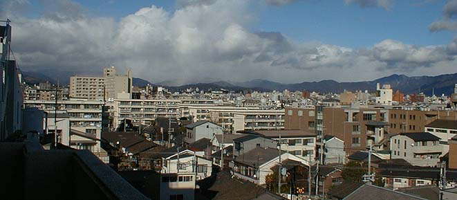 | 同西側ベランダから西大路通り越に北山を望む |