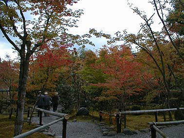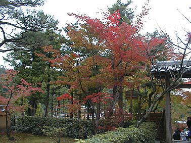 南隣の滝口寺のもみじはすっかり色づいている