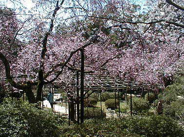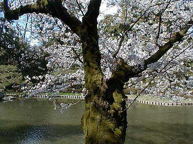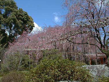 | 神宮庭園を入ったところにある枝垂桜 | 枝垂桜は全般にまだ5分咲きくらい |