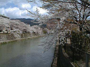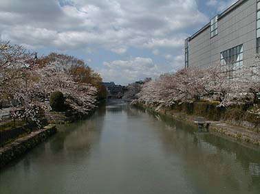 | 平安神宮大鳥居前の橋から見た疎水のサクラ、右が近代美術館 | 疎水のサクラ(京都市美術館側−東側) |