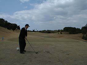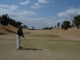 | イン15番名物ホール 左の大きなバンカーに入れて6叩いた | ここで記念と思ったが・・・。 |