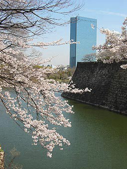 | ハイッ、ここがシャッター・ポイントです! | 大阪城のお壕と近代ビル |