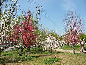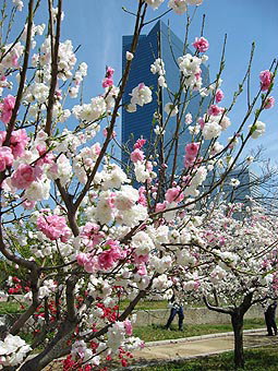 | 大阪城公園内に新しく出来た桃園 | 桃の花 |