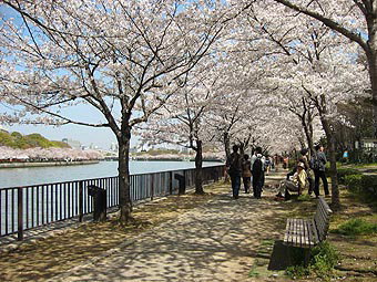 | 対岸に渡って桜ノ宮公園を見る | 桜ノ宮公園を橋の上から(サクラばかり) |