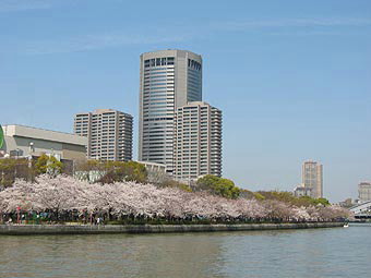 | また大川に戻って桜ノ宮公園へ | OAPのビル群を望む |