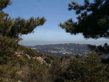 | 芦屋奥池方面 | お多福山への尾根道から六甲山を望む |