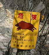 | 雨が峠 | 至る所にイノシシ出没の危険標識、実際、風吹岩付近で 母子連れの3頭を目撃。モイチは逃げていく音だけ聞いた。 |