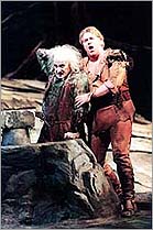 The opera has nearly four hours of music, and Siegfried sings during most of it. He must portray an impulsive and brawny youth. Yet it takes most tenors years to develop the vocal heft and stamina to handle the music. Only one tenor in the 20th century sang it with the kind of heroic sound and command than Wagner envisioned: Lauritz Melchior. On Saturday another Danish tenor, Stig Andersen, made his Metropolitan Opera debut in the title role of "Siegfried" in the first of the company's three complete "Ring" cycles this season. And if he is no threat to the Melchior legacy, Mr. Andersen is a creditable Siegfried, which is no small accomplishment. He does not have a true heroic tenor voice like, say, Ben Heppner, a great Tristan who has avoided Siegfried, probably sensibly. Mr. Andersen's fine-grained sound, if not enormous, is robust and backed with solid technique. By skillfully pacing himself, he managed to summon enough power in the big moments to be heard over the thick orchestrations, though James Levine, an astute accompanist of singers as well as a great Wagner conductor, helped out by keeping the instrumental textures light and clear wherever possible. Mr. Andersen started his career as a baritone, and his lower voice is still stronger than his top notes. Vocally this was a solid and intelligent account of the role, sung with rhythmic incisiveness and crisp diction. Everything else about his portrayal was exceptional. He made this blockhead of a boy seem genuinely sympathetic. When he questioned Mime, the conniving dwarf who has reared him, about who his real parents were, this Siegfried seemed painfully vulnerable. With his reddish-blond hair, husky athletic build and youthful energy, Mr. Andersen looked great. In a recent interview he was unwilling to reveal his age. But during intermission on Saturday, a friend of his, a Danish journalist, said he was 50. If so, that would mean this performance is probably the most complete account of the role he will give us. No backhanded compliment is intended by saying that Mr. Andersen is probably the best Siegfried we have right now. The final cruelty that Wagner inflicted on Siegfried occurs in the last 30 minutes of the opera. He arrives on the fire-surrounded rock where Br・nhilde has been under a sleeping spell since "Die Walk・e." He wakes her, and they proceed into one of the most vocally taxing love scenes ever. He has been singing for hours; she is fresh as a daisy. As Br・nhilde, the soprano Jane Eaglen certainly sounded fresh, singing with her customary vocal plushness and presence. Mr. Levine seems to elicit the most dramatically involved work from this sometimes stolid singer. The great bass James Morris was once again a vocally commanding and deeply affecting Wotan (here called the Wanderer), surely the great achievement of his career. The tenor Graham Clark gave a wily, spry and wonderfully nasal-toned portrayal of Mime. Singing Mime's bossy brother, Alberich, the baritone Ekkehard Wlaschiha offered bellowed growls and pitchless shouts in place of honest singing. The fine mezzo-soprano Birgitta Svenden sang Erda. The offstage voices of the bass Eric Halfvarson as Fafner the dragon and the soprano Heidi Grant Murphy as the Forest Bird were effective. Ms. Eaglen and Mr. Andersen return on Saturday as the first cycle concludes with "Gotterdammerung." Here Wagner more evenly distributed the vocal demands on his ill-fated hero and heroine. |