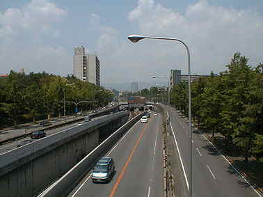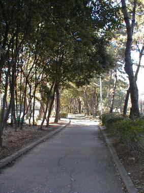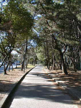 | 千里中央線東側の遊歩道(千里南公園横)街路樹というよりは、雑木林という雰囲気である。 | 千里中央線東側津雲台付近 |