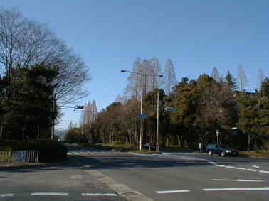 側道や中央分離帯には、アラカシ、シラカシ、シイ、クヌギ、クロマツ、アカマツ、スギ、ヒノキ、ラクウショウ、メタセコイヤ、