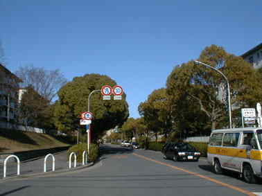 | 千里中央線西側(竹見台)の遊歩道、この辺りはクスノキが中心。 | 津雲台入り口のクスノキ並木 |