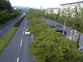 トネリコ並木(東町側)側道はイチョウ並木