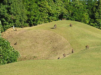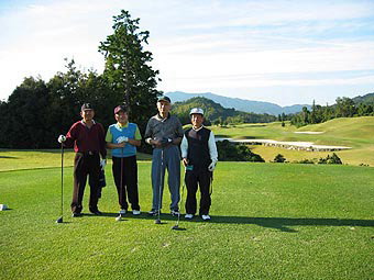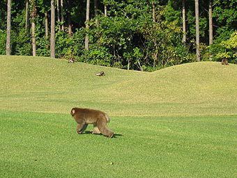 | インの何番だったか日本猿の一行が現れた キャディさんによると前日は6番の池越えショートホールに 現われ、池の回りを囲んで見物していたそう。おまけに グリーンに乗ったボールを1個持ち去ったんだって。 |