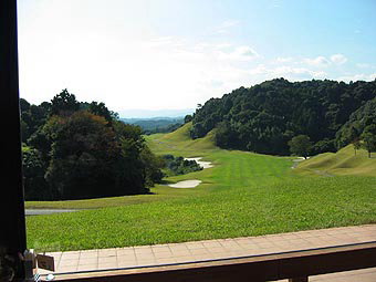 クラブハウスから1番ホール ティーショットの落しどころが狭い。 |