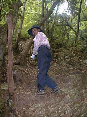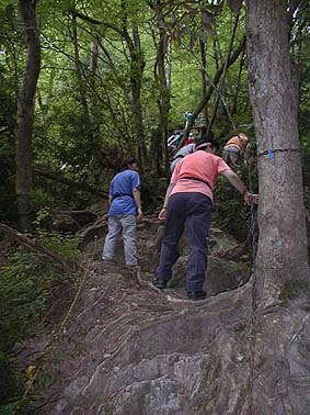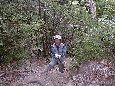 この雨不足にもかかわらずまだまだ水量は豊かで、滝を巻くかずかずの鎖場の登り