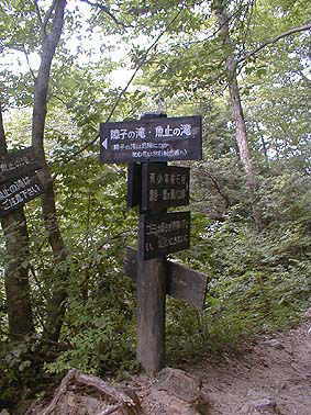 | 障子の滝・魚止の滝への降り道サイン | 障子の滝降り道 |