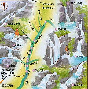 | 八淵の滝への案内図 | 滝への道を行く |