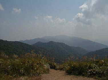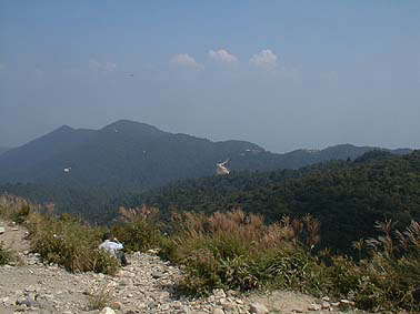 | 頂上から蓬莱山を望む | 頂上からロープウェイ駅方向を望む |