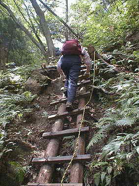 | 七偏返しの滝横のはしご道 | ナガサカ道に出て尾根筋を辿る |