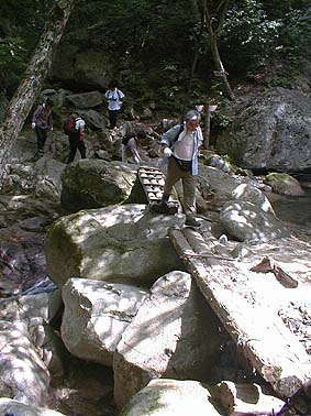 | 丸太橋を渡る | 屏風の滝 |