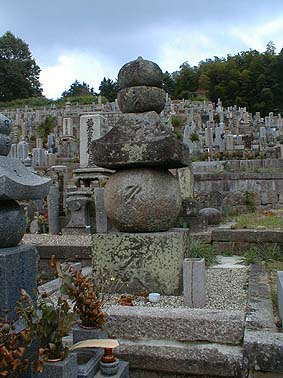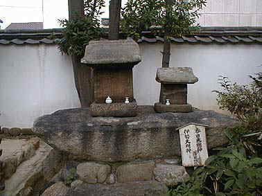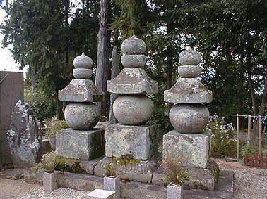 | 常念寺の念仏板碑(永正17年・室町時代)後ろは工事用袋 | 西光寺、3基の五輪塔(中央は高さ2m・鎌倉末期) |