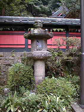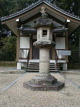 | 里の春日神社(本殿横にあるのが六角形石灯) | 六角形石灯、高さ2m、鎌倉末期の完存品 |