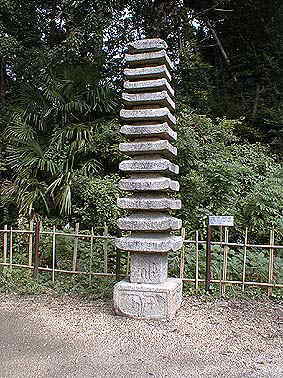 | 燈明寺跡石燈篭(鎌倉時代のものを江戸期に模造) | 燈明寺十三重塔(基礎側面に南山城では珍しい蓮華紋がある) |